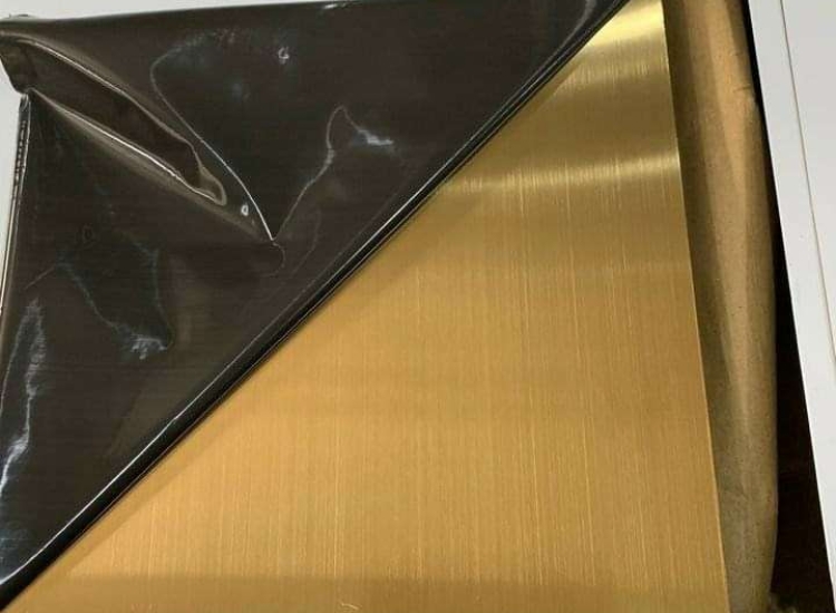 Tấm Inox xước vàng được biết đến là loại inox có màu vàng mà trên bề mặt inox xuất hiện các đường nét mài xước đồng đều, đường xước mịn màng và có đường kính rất nhỏ như sợi tóc. Các đường xước này xuyên suốt theo chiều dài của cuộn inox hoặc tấm inox, nhằm mục đích tạo thành những sản phẩm inox vàng xước theo dạng line nhuyễn chân tóc trên bề mặt tấm inox. Loại Inox xước này còn có tên gọi khác phổ biến là inox sọc hoặc inox xước hairline.